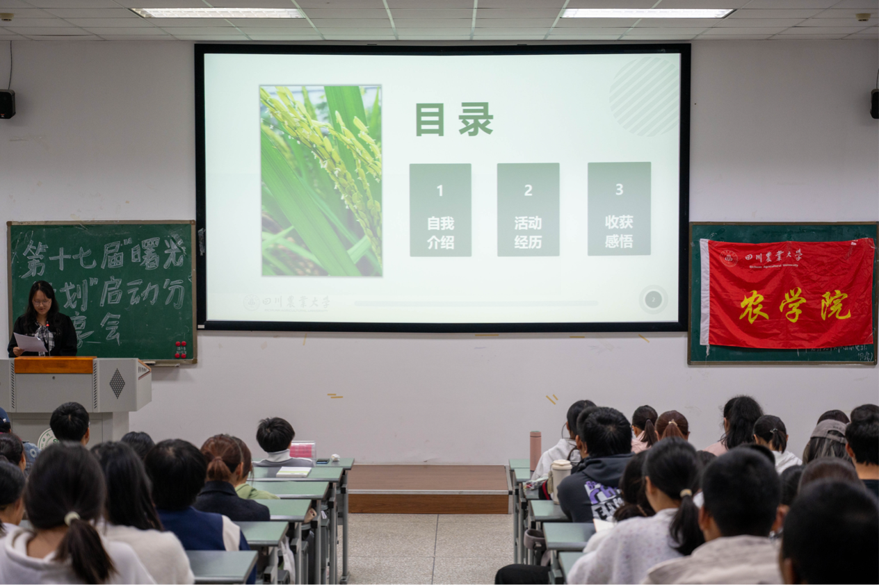 会议伊始,学习部干事肖茹静对2024-2025学年的“曙光计划”活动进行了全面总结,并向2025级新生发出热情号召:“愿农院学子担起历史重任,脚踏实地、心怀理想,成为推动农业发展的坚实力量!”